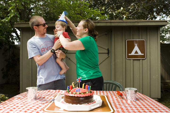 And this is baby Jack now! He's older, more sophisticated and more refined. Below are some of the pictures from Mike and Jack's birthday party last month. One turned 40 and the other celebrated his first birthday. I'll let you decide who celebrated what. Lauren organized an adorable camping themed party for both of them. I had such a great time, thanks so much for inviting me back to photograph Jack. Congrats to both of you!